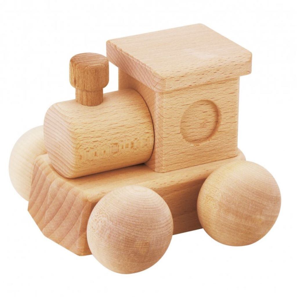 前に押しても、後ろに引いても優しいオルゴールのメロディーが連続して流れます。ブナ無垢材を使用したまあるい汽車のデザインが人気です。